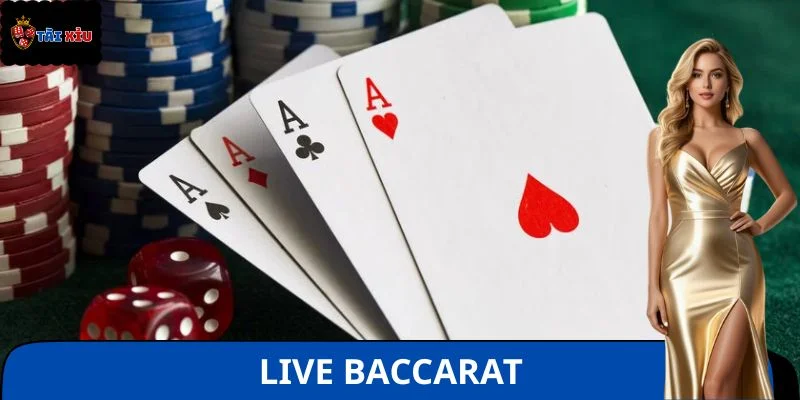 Live Baccarat là phiên bản trực tiếp của trò chơi Baccarat truyền thống, mang đến trải nghiệm chân thật thông qua kết nối video với dealer thật. Người tham gia có thể tương tác trực tiếp, tạo cảm giác sinh động và hấp dẫn hơn so với hình thức chơi tự động. Giao diện trực quan giúp người tham gia dễ dàng theo dõi và tham gia game.